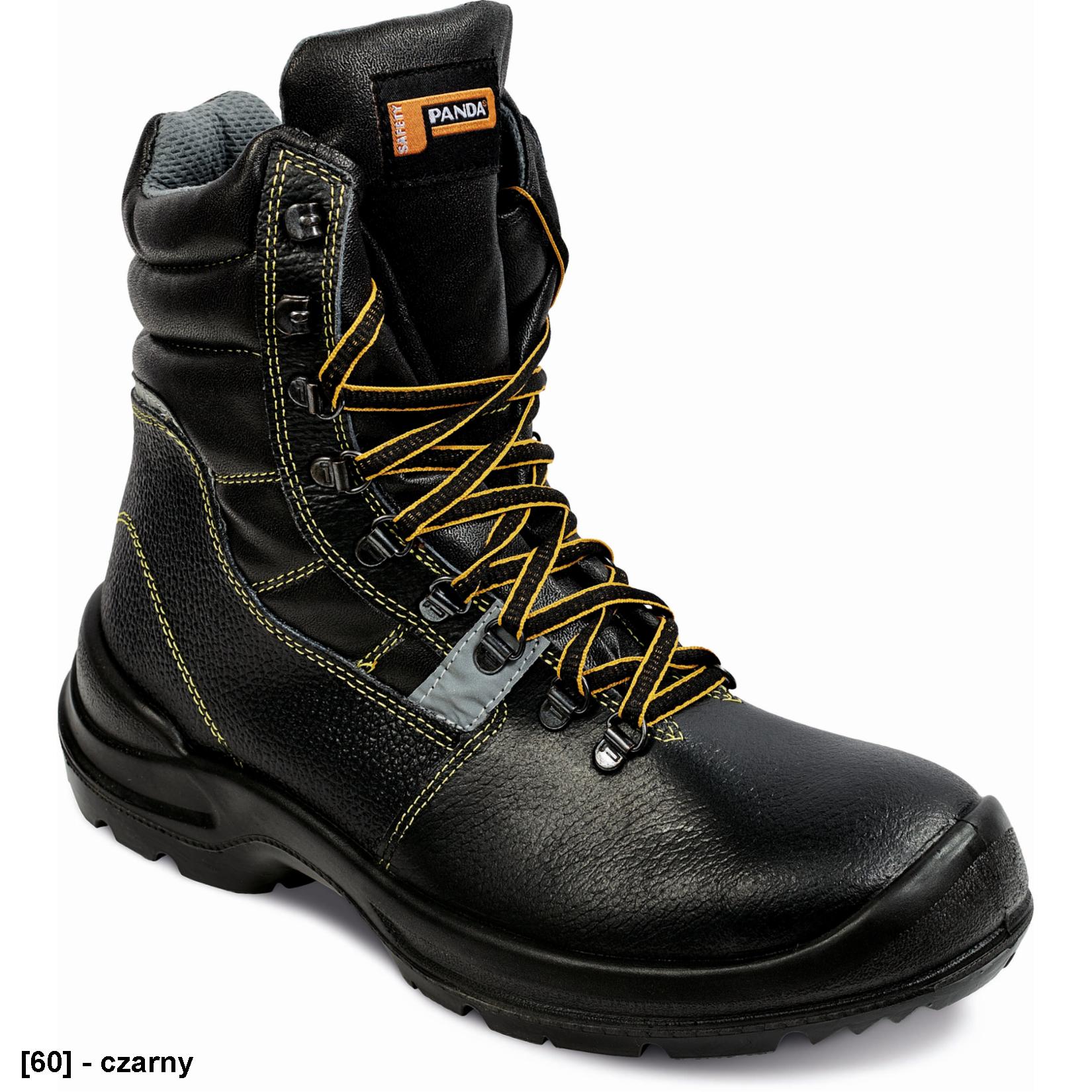 Wysokie obuwie ochronne, wodoodporne, ze stalowym podnoskiem i wkładką antyprzebiciową, podeszwą antystatyczną i antypoślizgową PU/PU odporną na kwasy i oleje, tłumienie w okolicach pięty, wodoodporne, wykonane z oddychającej skóry, elementy odblaskowe w celu zwiększenia widzialności.