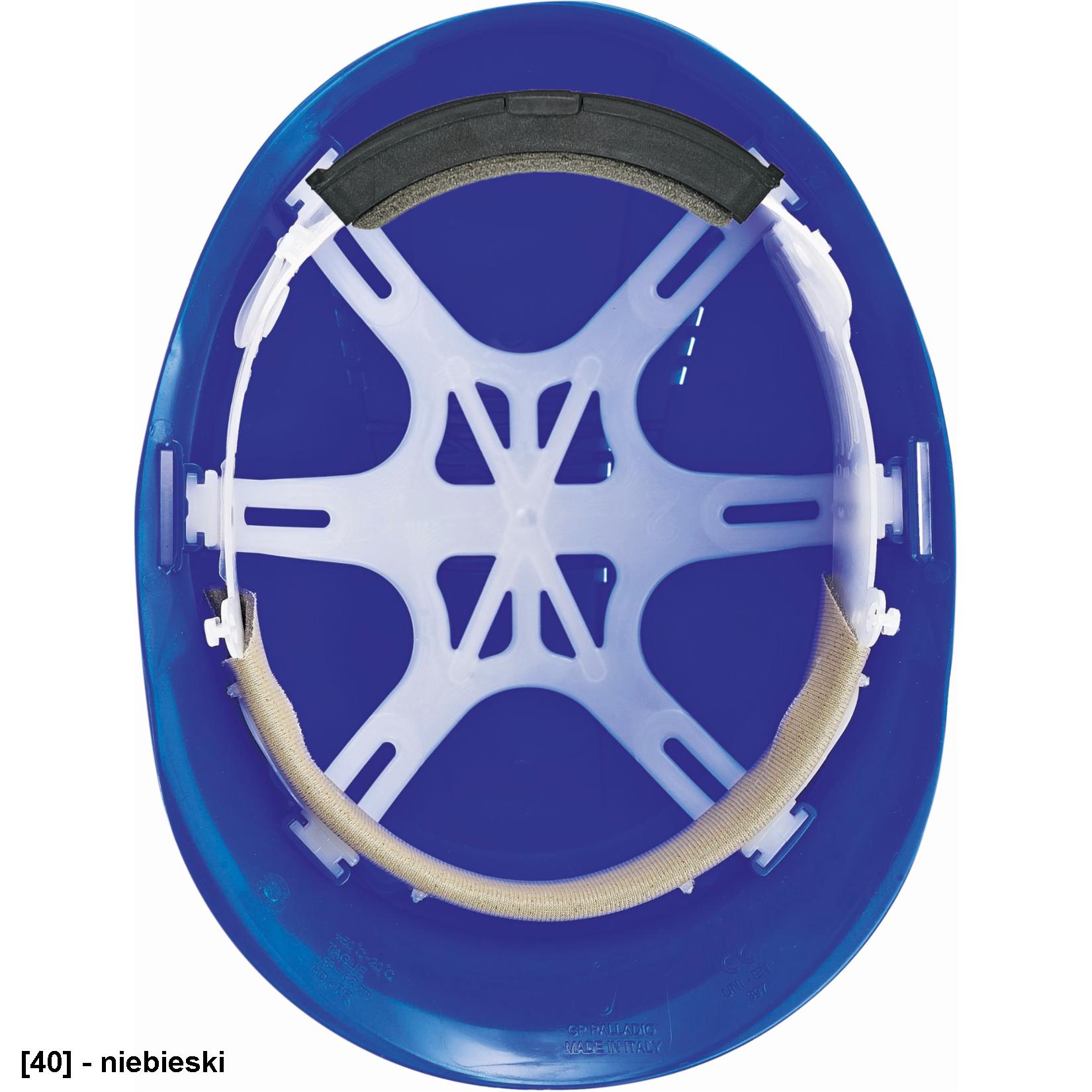 materiał: HDPE, waga: 330 g, wentylacja: tak, 6-punktowa, plastikowa więźba, regulacja obwodu: automatyczny system regulacji, rozmiar: 53–62 cm, żywotność: 5 lat, temperatura: -20° C do +50° C