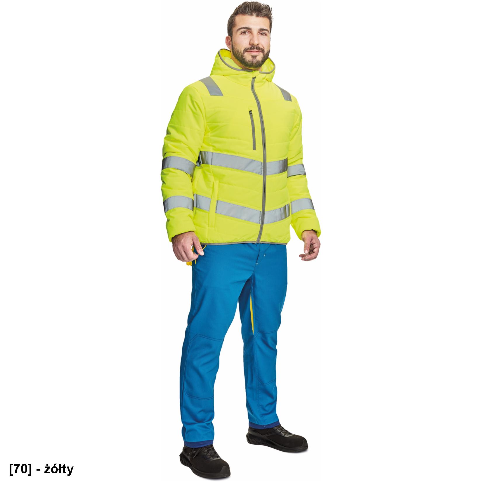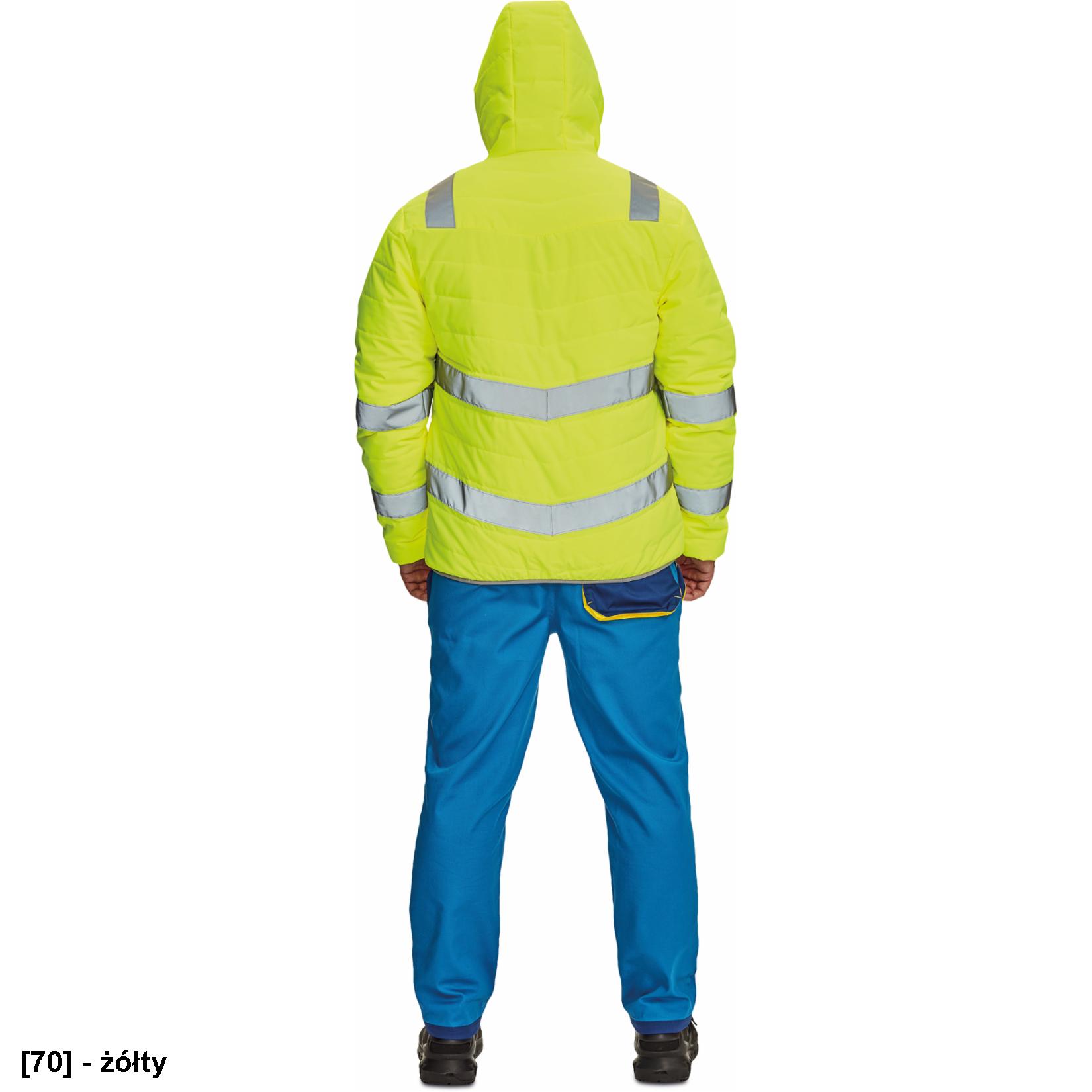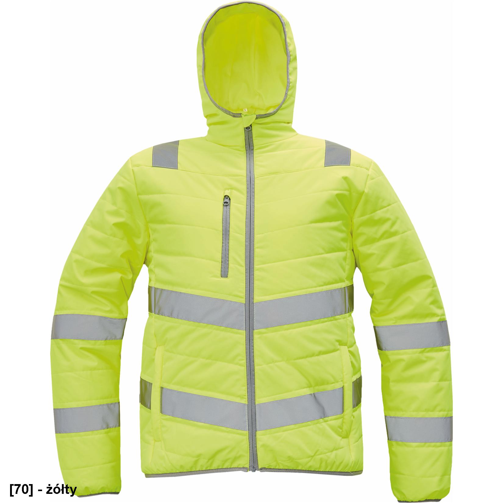 • Męska, ocieplana kurtka Hi-Vis z kapturem i taśmami odblaskowymi.