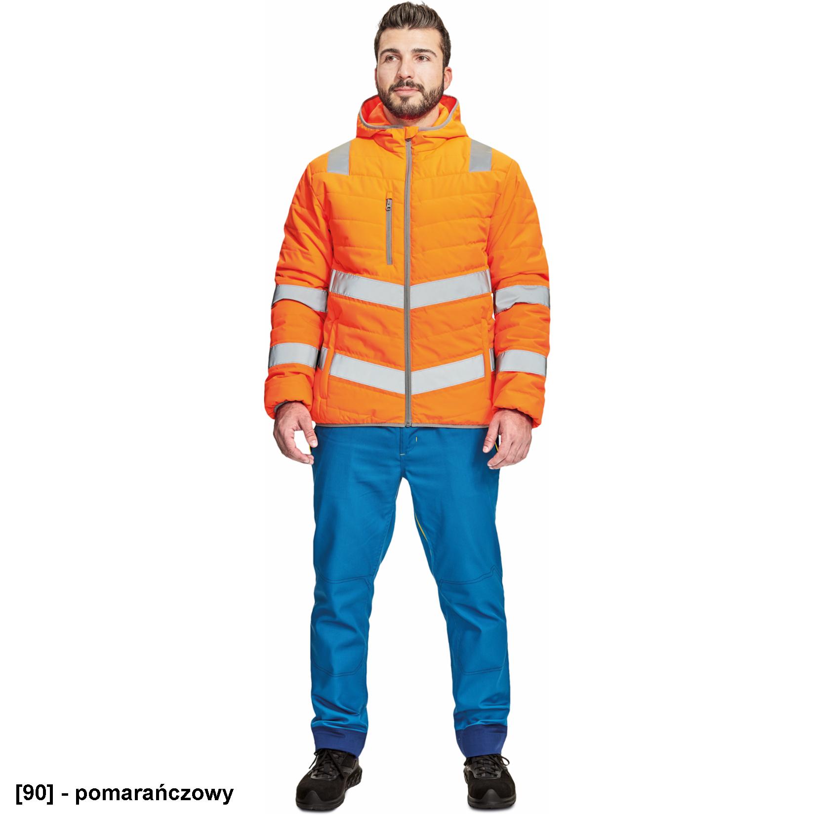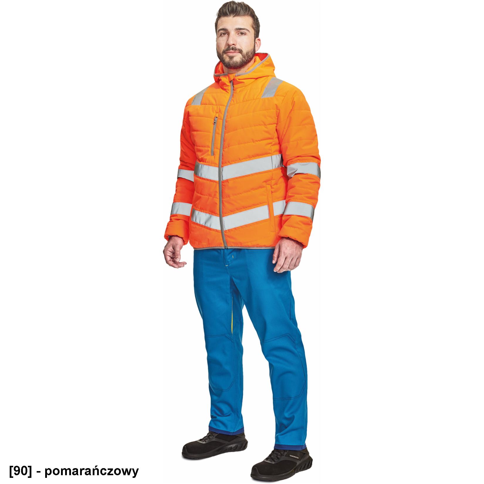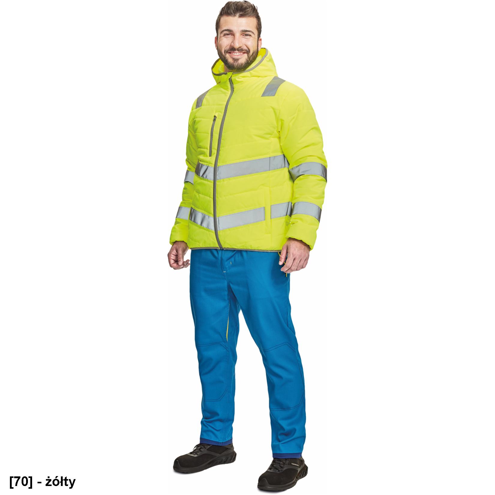 • Męska, ocieplana kurtka Hi-Vis z kapturem i taśmami odblaskowymi.