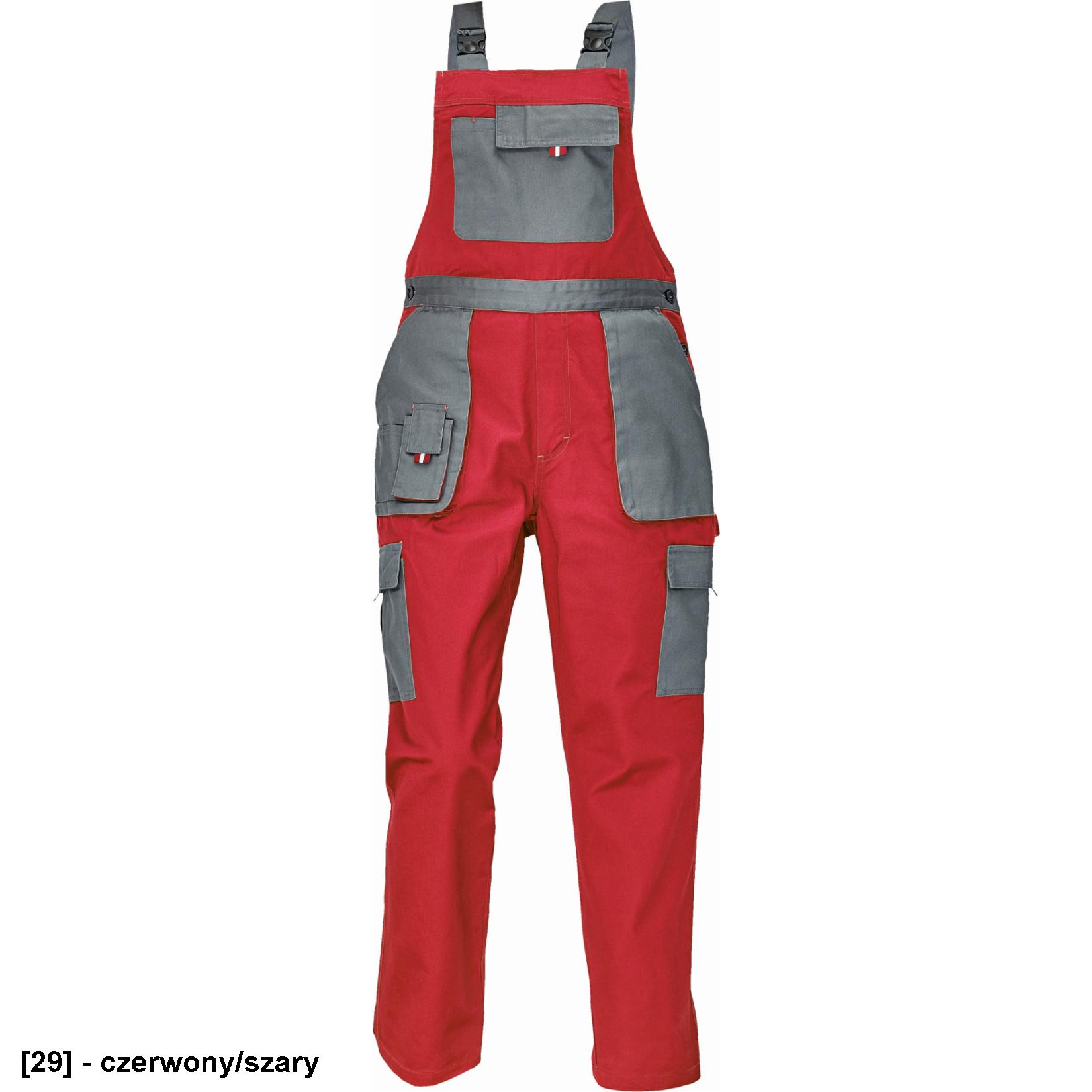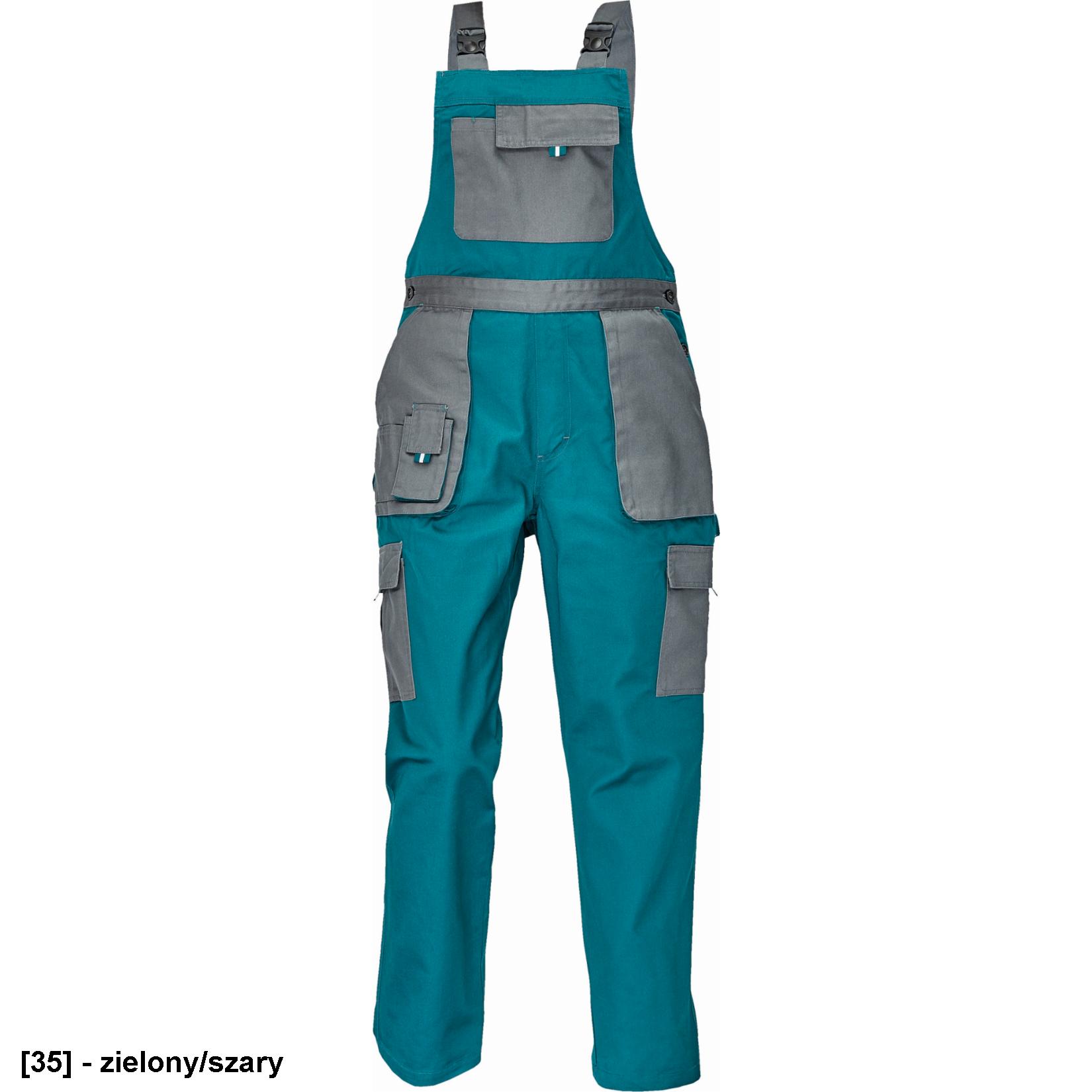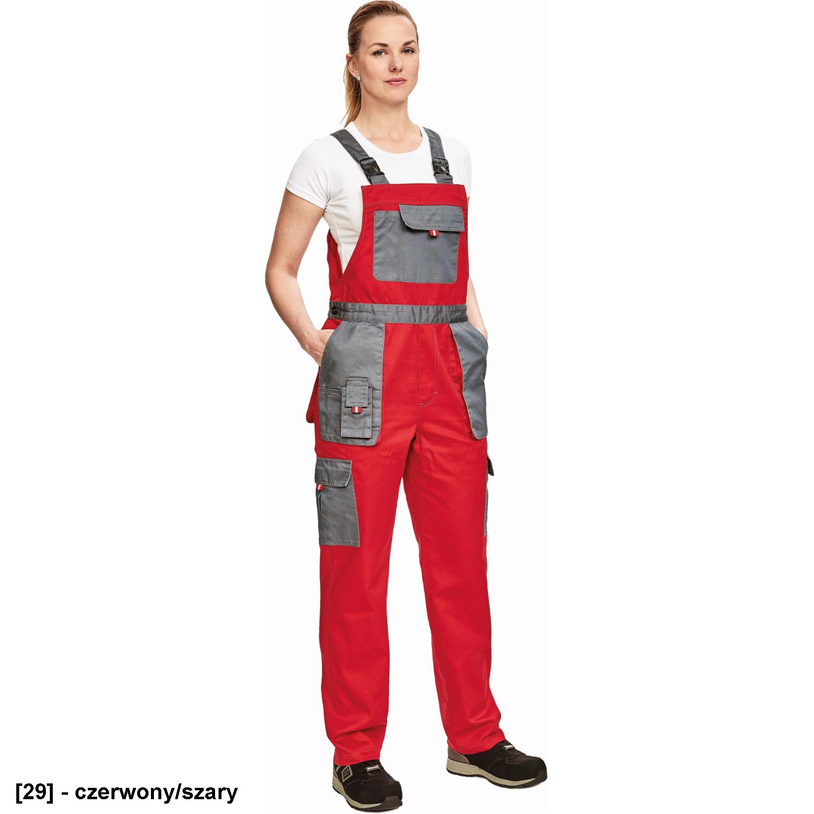 • Damskie, robocznespodnie ogrodniczki modnym kroju podkreślającym kobiecą figurę.