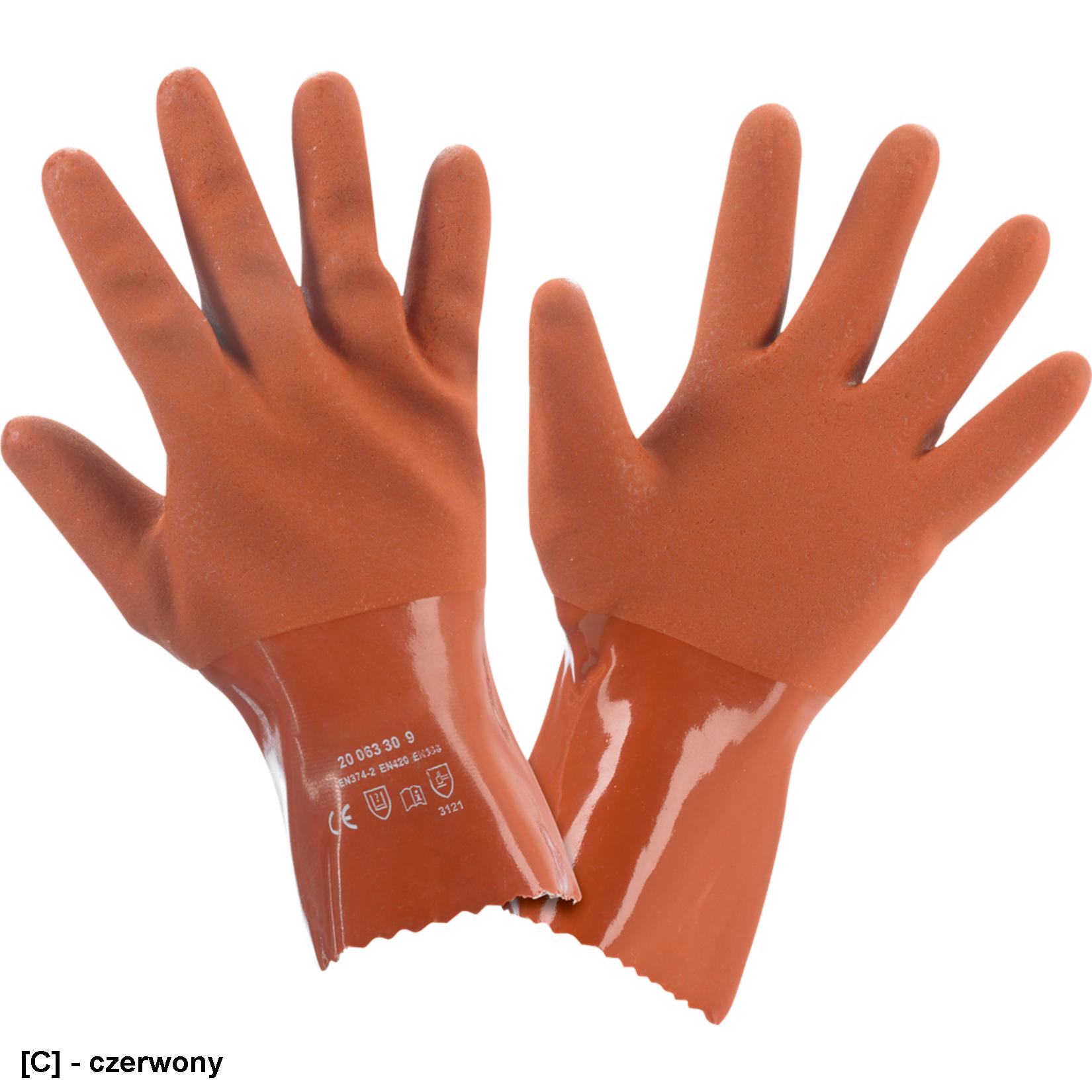 • Rękawice ochronne pvc. podwójnie powlekane PVC na pokładzie z dzianiny 100% bawełnianej.