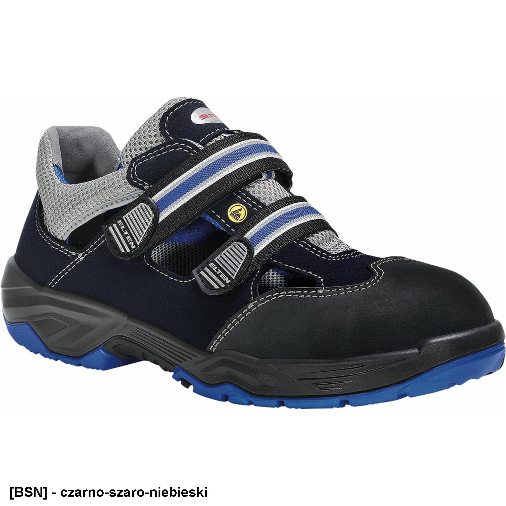 - Sandały bezpieczne elten runabout esd. wykonane z nubuku, mikrowłókień i materiału siatkowego.