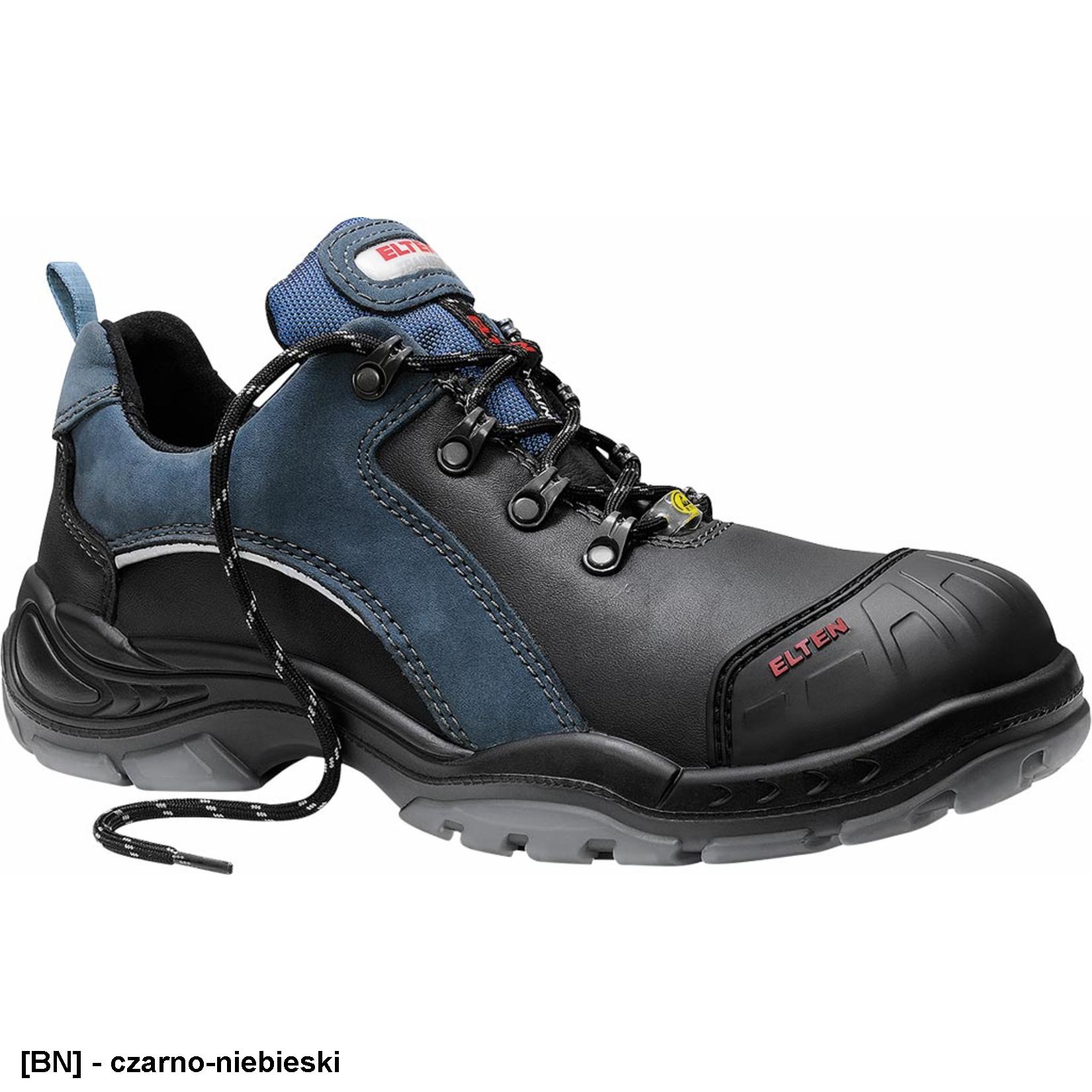 - Półbuty bezpieczne elten nick esd. wykonane ze skóry bydlęcej, hydrofobowej nubukowej i materiału tekstylnego.