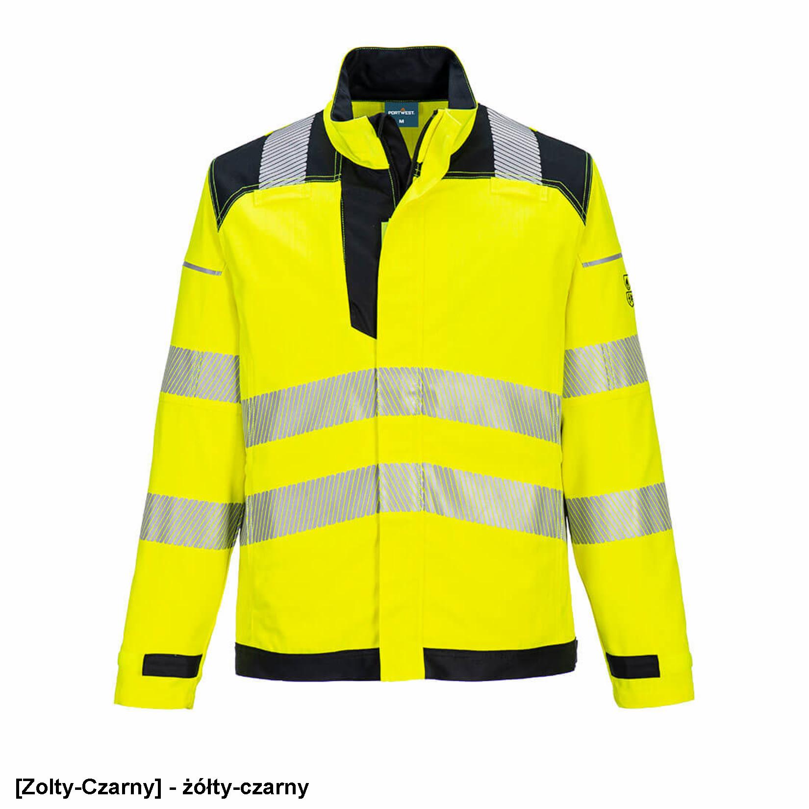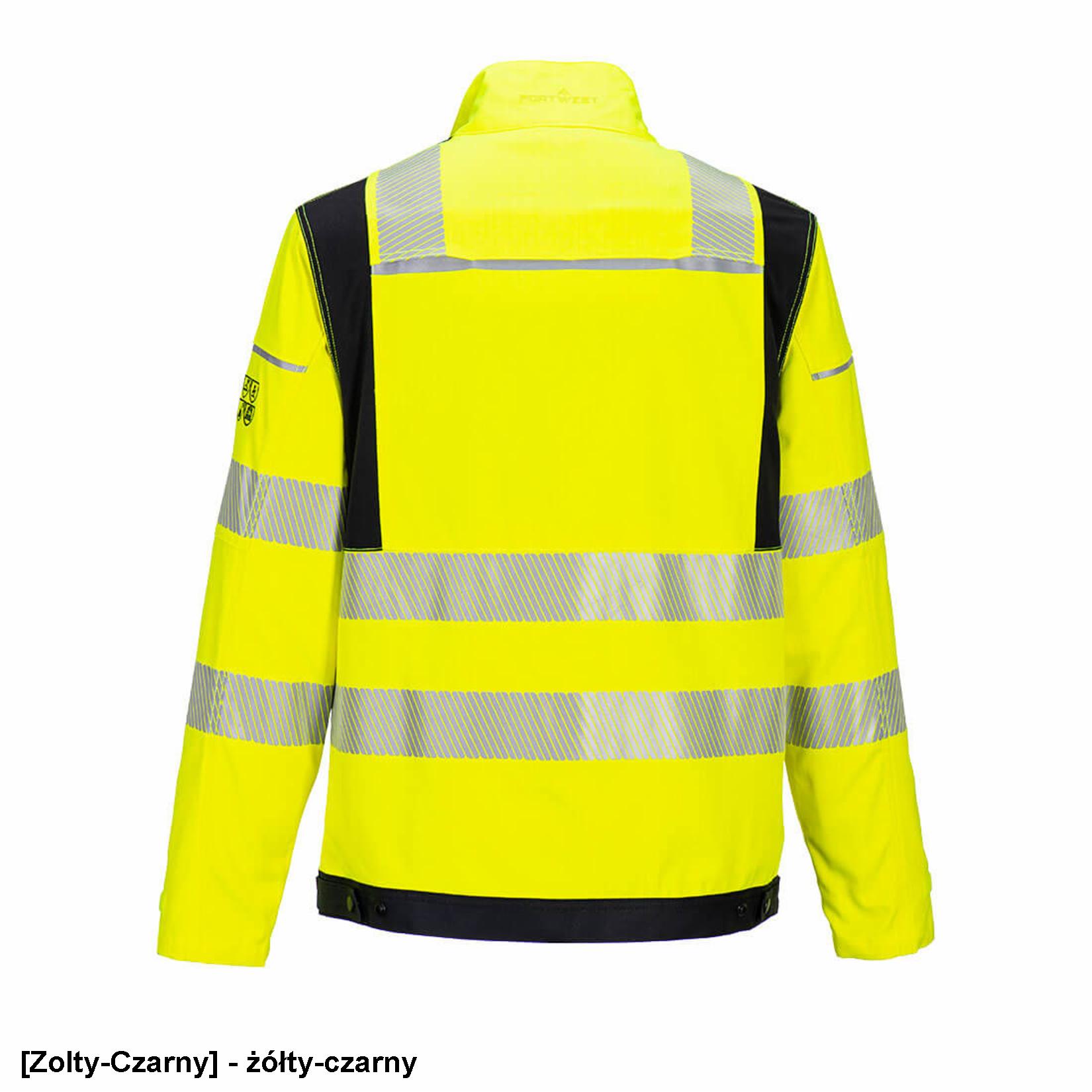 Współczesna, dwukolorowa bluza ostrzegawcza, charakteryzująca się najnowszym innowacyjnym designem, jest zarówno stylowa, jak i praktyczna. Górna kieszeń może pomieścić nowoczesne smartfony, a przestronne dolne kieszenie są zapinane na zamek błyskawiczny dla dodatkowego bezpieczeństwa. Wyróżniające się cechy obejmują segmentowe elementy odblaskowe, regulowane mankiety na rzepy oraz wzmocnione podwójne szwy.