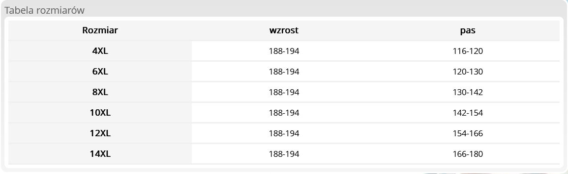 Tabela rozmiarów