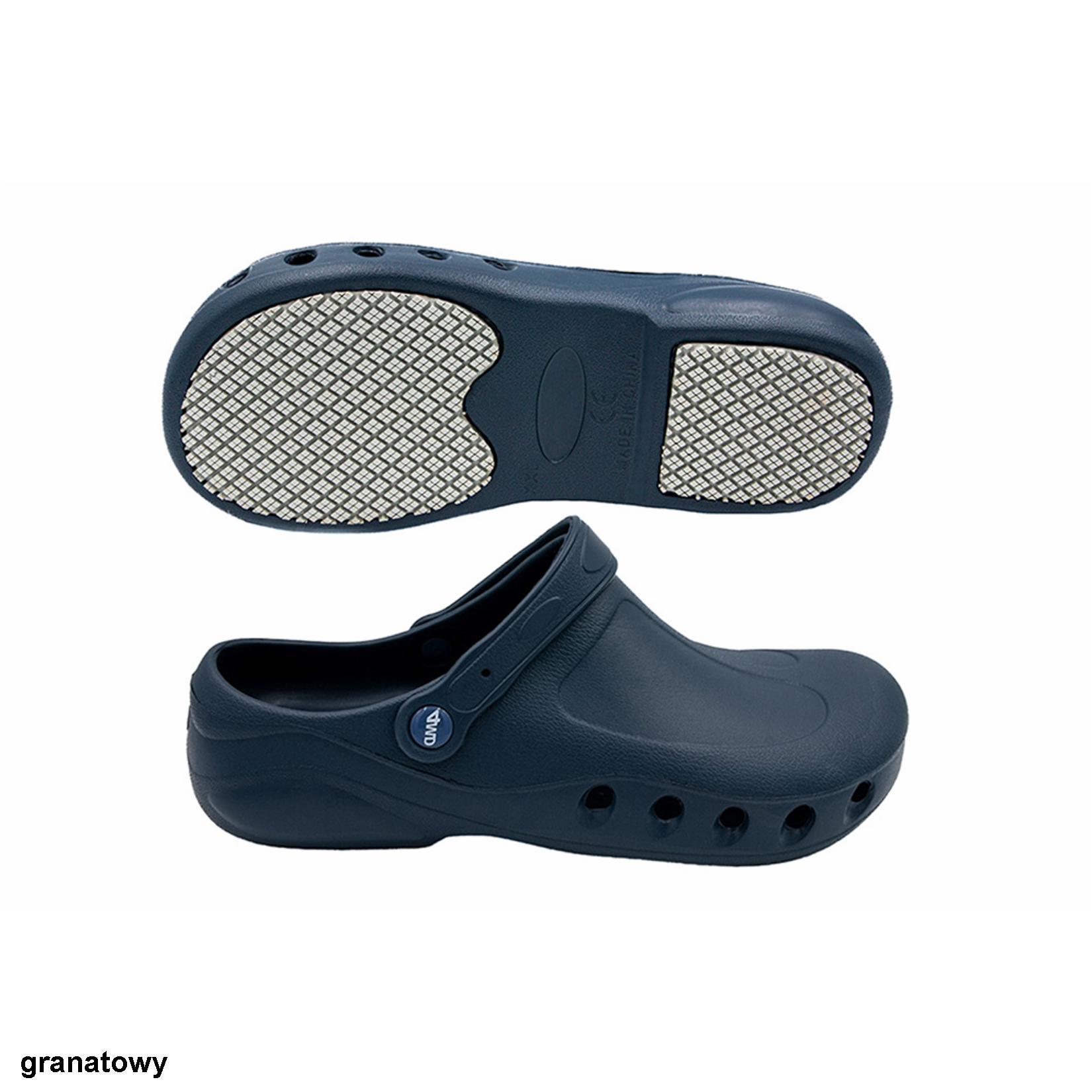 Charakterystyka:Skład [%]: Pianka EVA + Guma RBWymiary: 34/35, 36/37, 38/39, 40/41, 42/43, 44/45Kolor: biały, granatowyNormy: Oeko-tex®