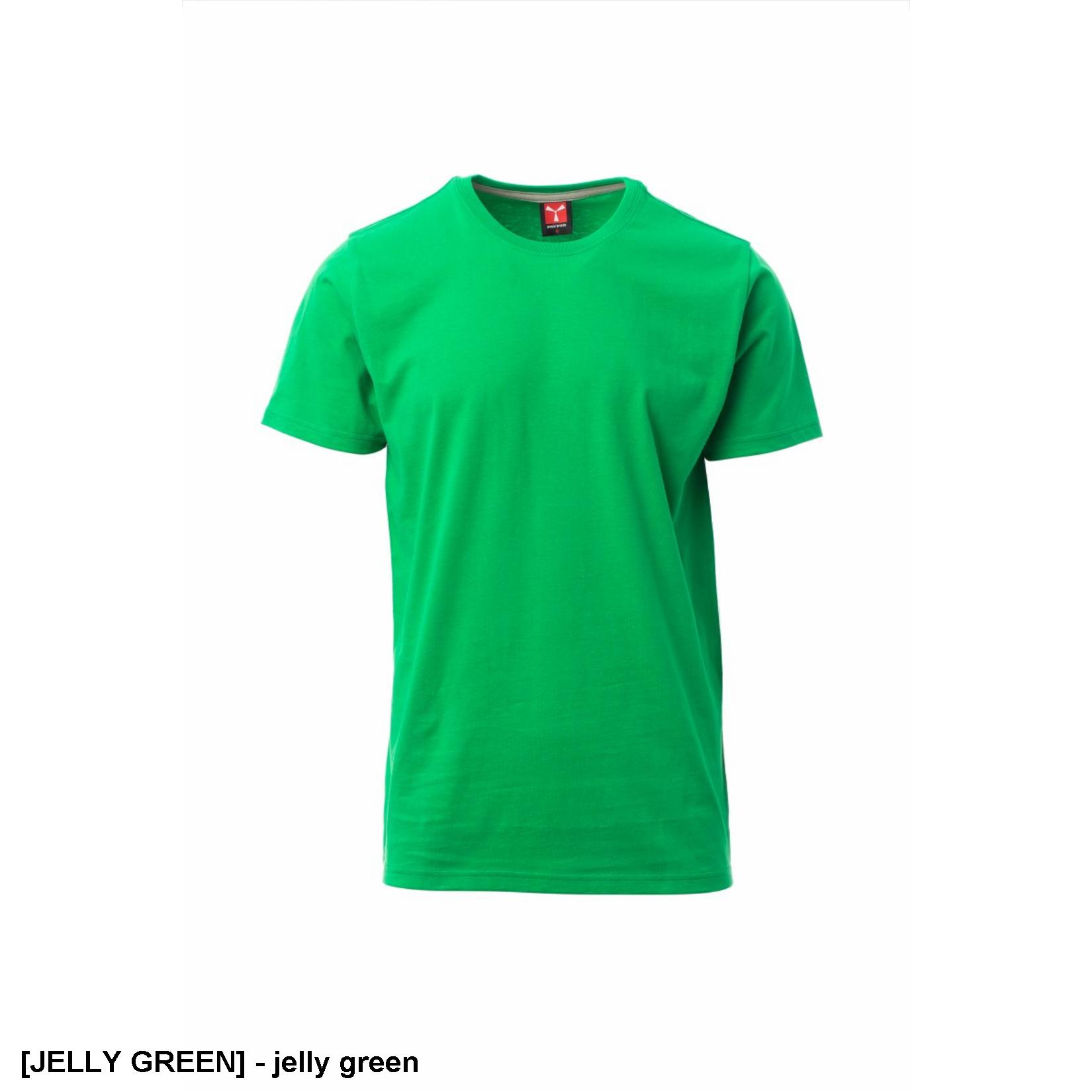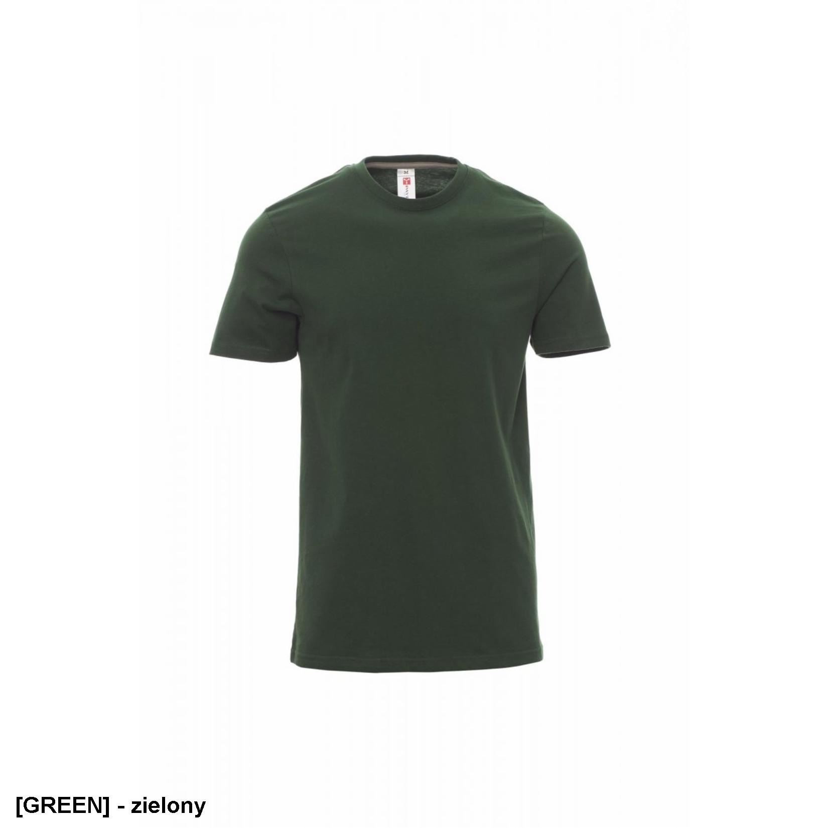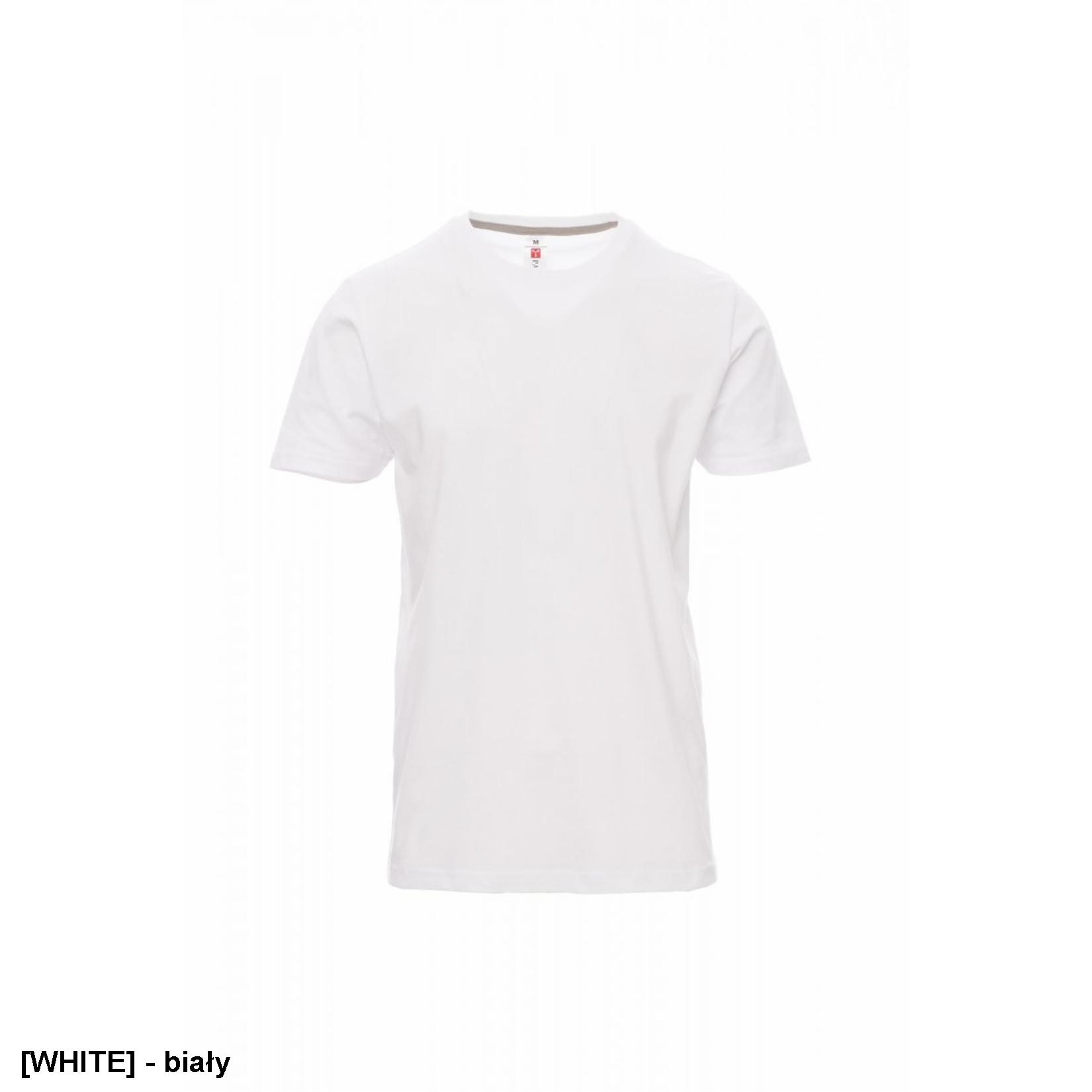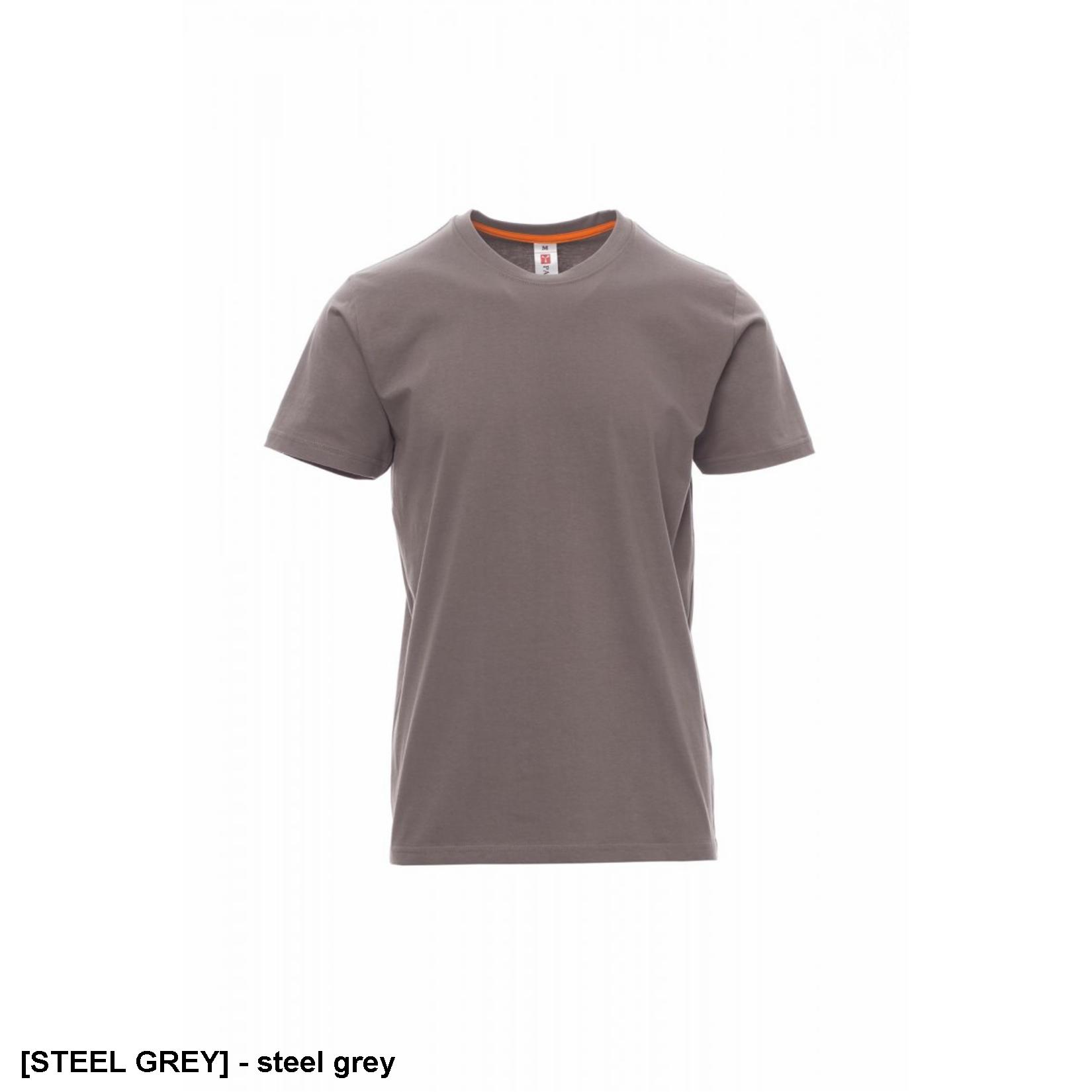 T-shirt męski z krótkim rękawem, okrągłym dekoltem, ściągaczem 1,5 cm z domieszką spandexu i górnym szwem z przodu, kontrastowa taśma wzmacniająca na ramionach widoczna po wewnętrznej stronie kołnierza, szwy elastyczne, szwy boczne
