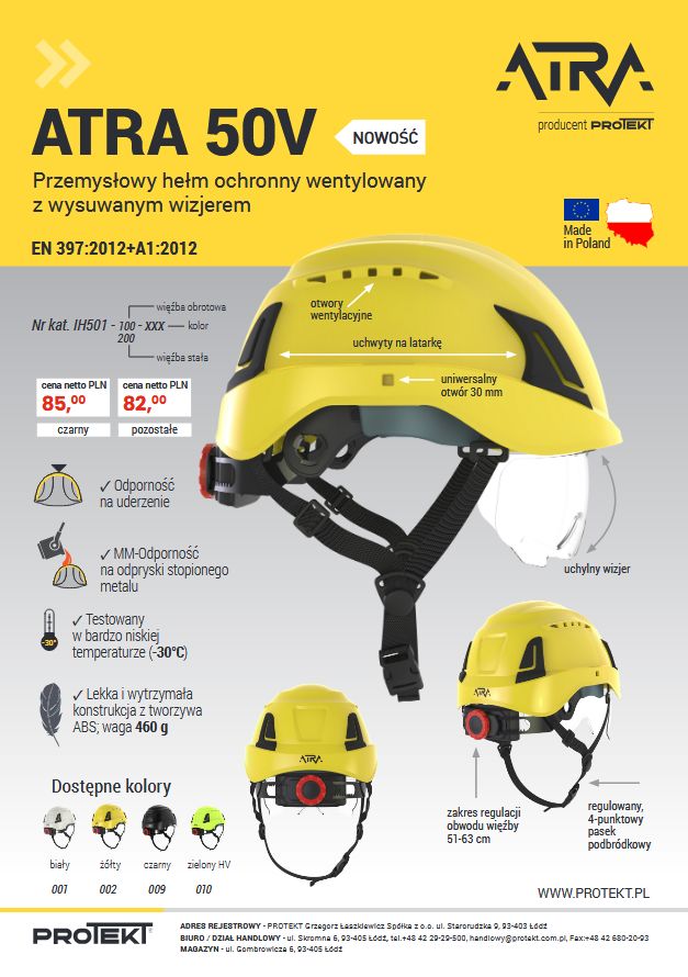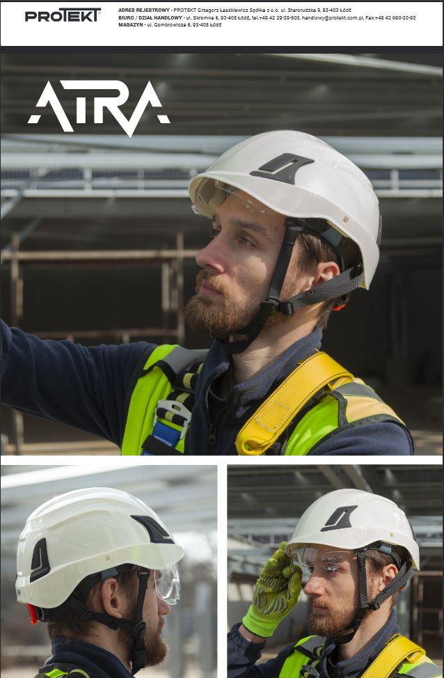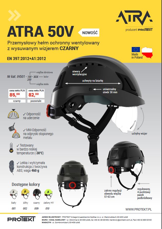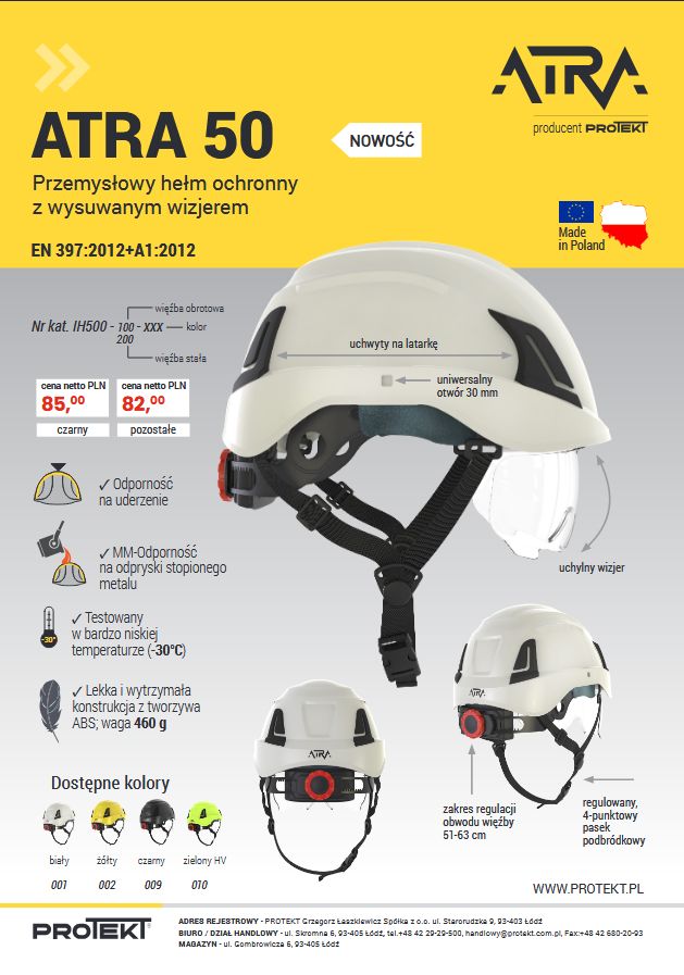 Hełm przemysłowy hełm ochronny z wysuwanym wizjerem ATRA 50.