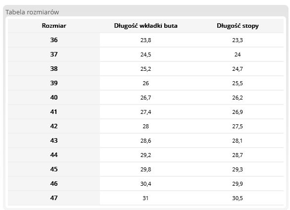 - Podeszwa odporna na oleje, tłuszcze roślinne i zwierzęce.