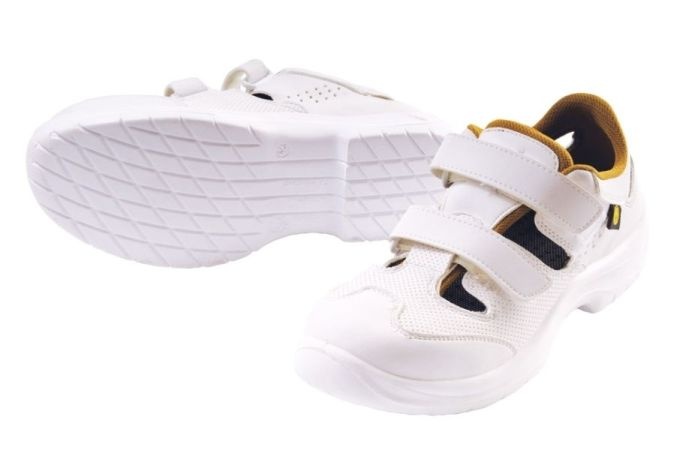 Obuwieochronnewykonane zmikroporowatego syntetycznego materiału, popularne w branży medycznej i spożywczej.