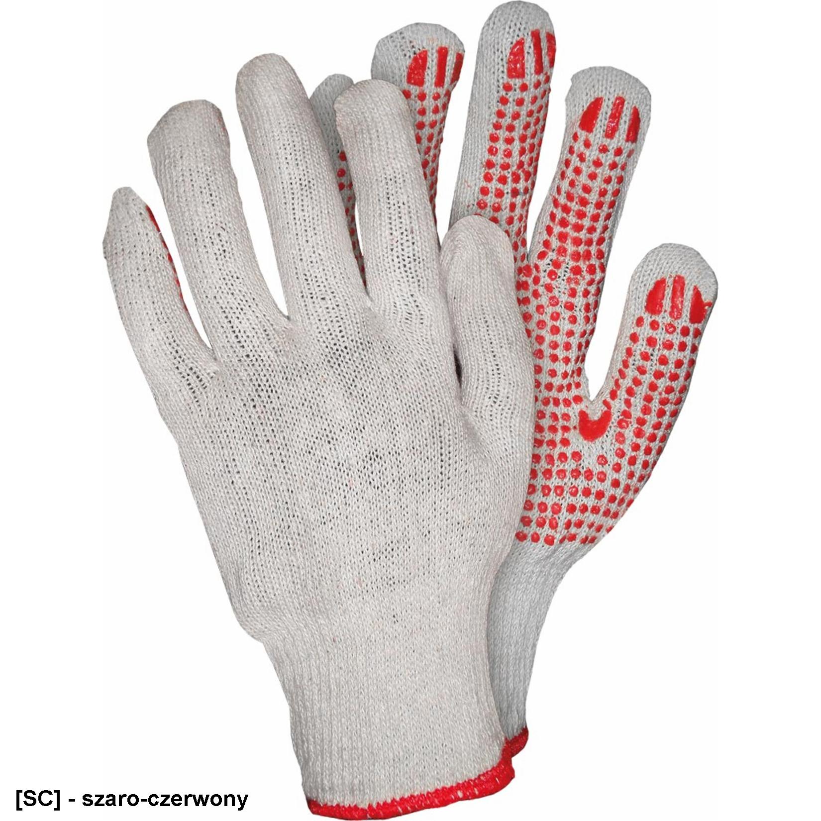 - Rękawice ochronne wykonane z dzianiny z jednostronnym nakropieniem. 35% poliester, 65% bawełna (ścieg 10).