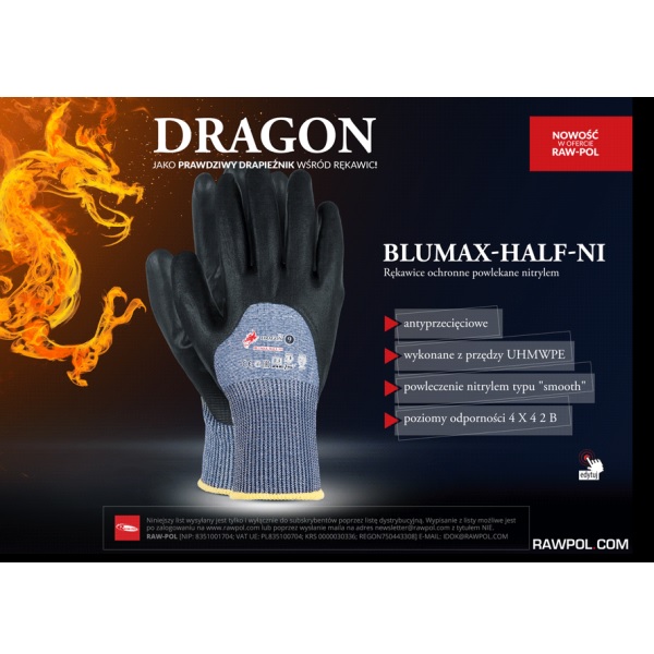 Część chwytna i do połowy część wierzchnia powlekana nitrylem typu 'smooth'.