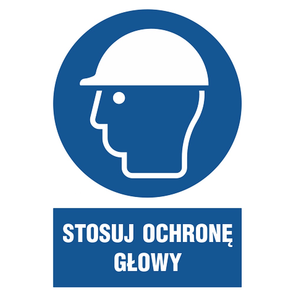 Nakaz stosowania ochrony głowy - znak nakazu - sztywna płyta 1 mm - 210x300 mm.Znak jest wodoodporny, odporny na czynniki atmosferyczne oraz niektóre środki chemiczne.
